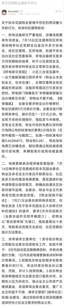 15. 帖文《凱豐花園物業(yè)服務(wù)不作為》