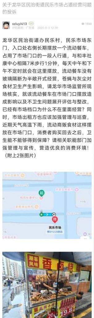 32. 帖文《關(guān)于龍華區(qū)民治街道民樂(lè)市場(chǎng)占道經(jīng)營(yíng)問(wèn)題的投訴》