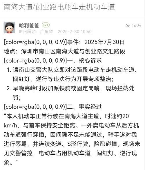 11. 帖文《南海大道/創(chuàng)業(yè)路電瓶車(chē)走機(jī)動(dòng)車(chē)道》