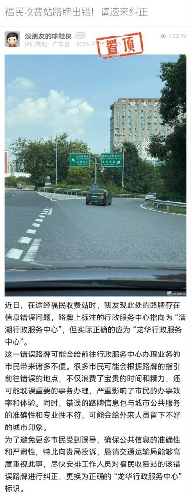 3. 帖文《福民收費(fèi)站路牌出錯(cuò)!請(qǐng)速來(lái)糾正》