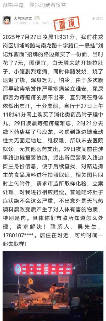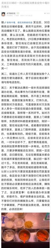 16. 帖文《龍崗區(qū)圳埔?guī)X一流動(dòng)攤販消費(fèi)者食物中毒補(bǔ)充情況》