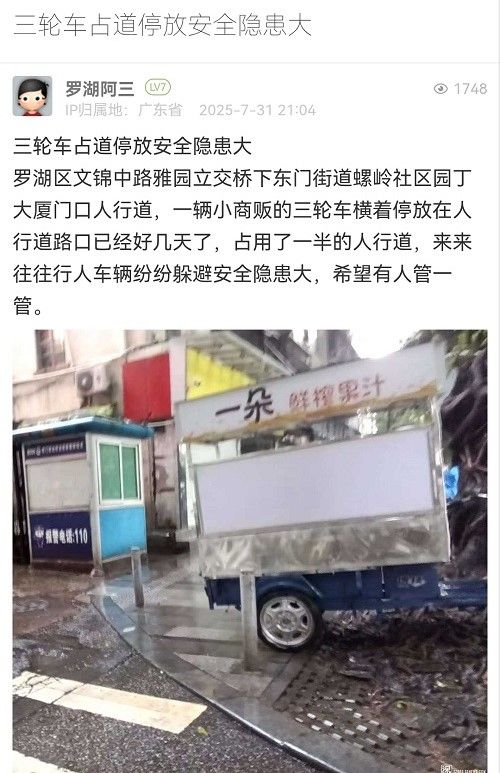 21. 帖文《三輪車(chē)占道停放安全隱患大》
