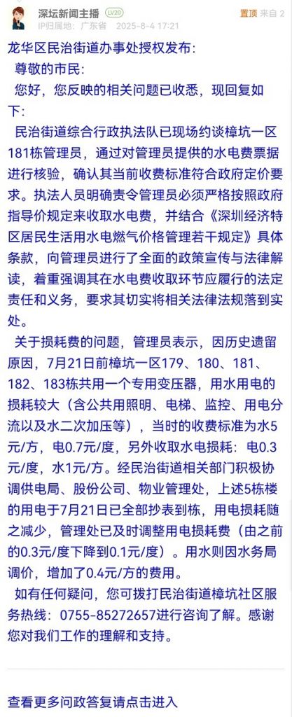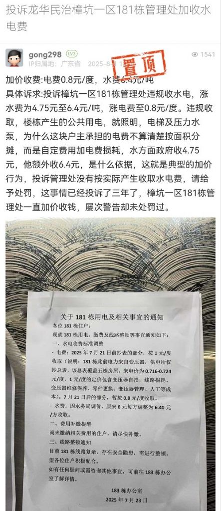 24. 帖文《投訴龍華民治樟坑一區(qū)181棟管理處加收水電費(fèi)》