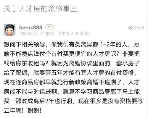 關(guān)于深圳論壇“關(guān)于人才房的資格事宜”留言,反饋如下: