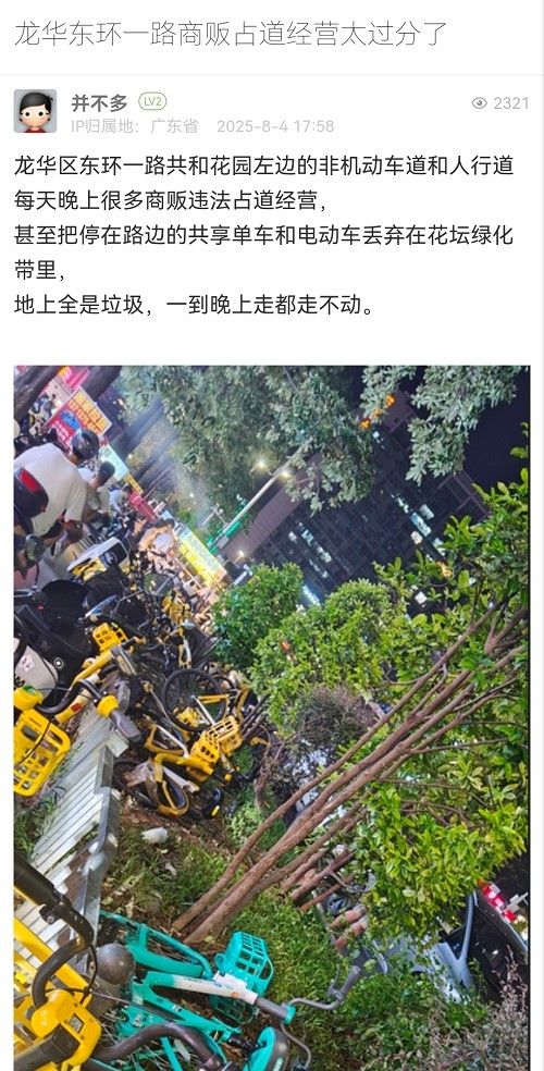 3. 帖文《龍華東環(huán)一路商販占道經(jīng)營(yíng)太過分了》